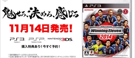 KONAMIは、サッカーゲーム「ウイニングイレブン」シリーズ最新作となる『ウイニングイレブン 2014』(PlayStation 3/PSP/ニンテンドー3DS)を2014年11月14日に発売すると発表した。