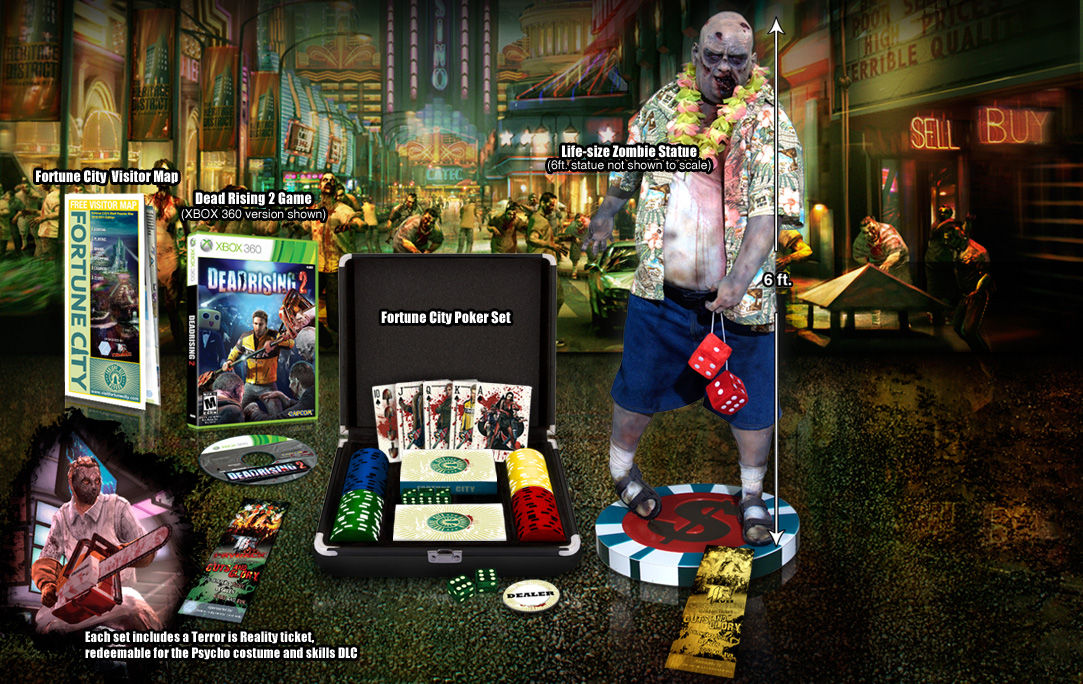 「Dead Rising 2 High Stakes Edition」には、ソフトのほかに、ポーカーセットにマップ、ダウンロードコンテンツ、ゾンビのレプリカなどが同梱されている。