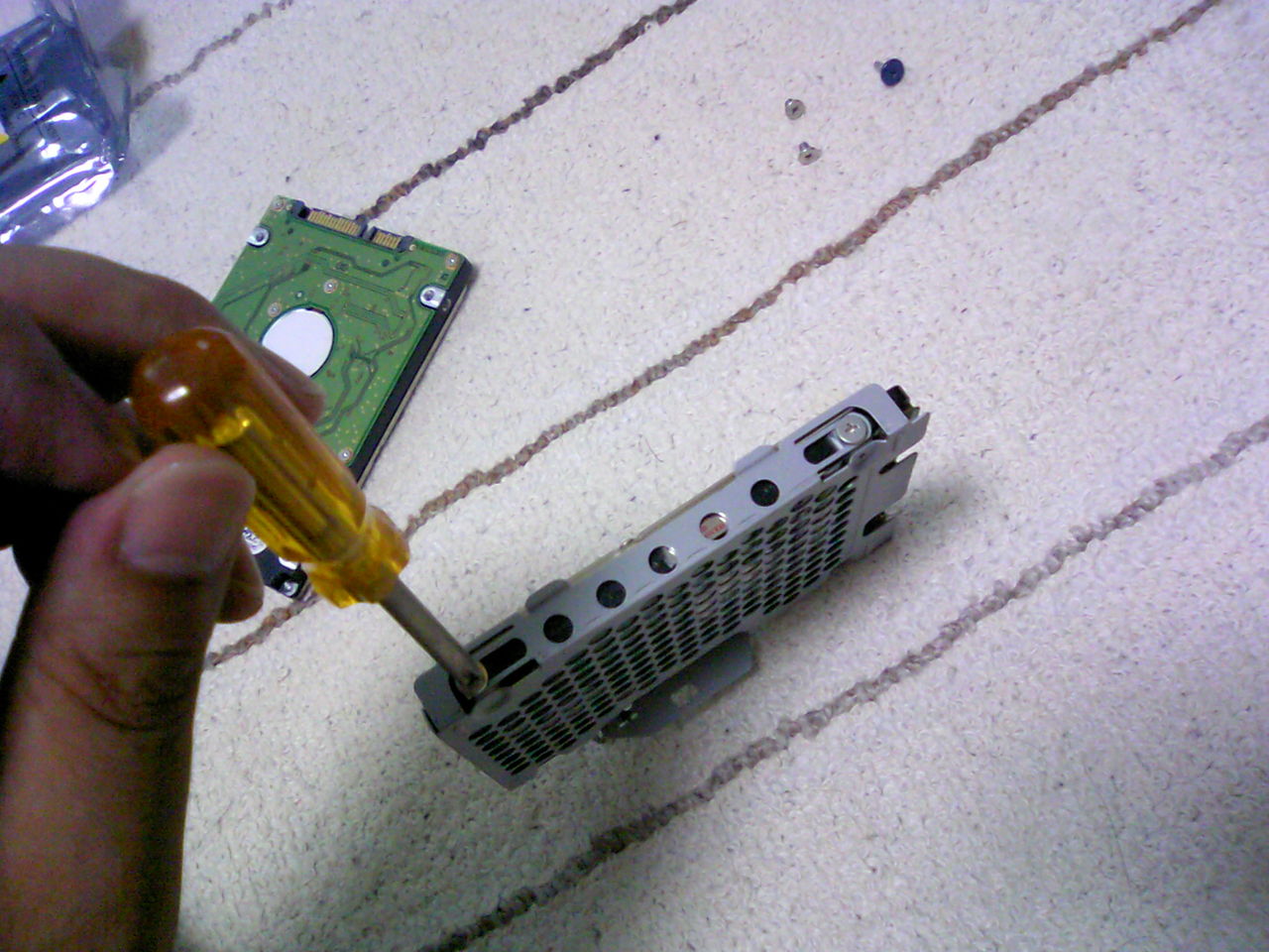 HDDが取れるので、新しいHDDを交換して、逆の手順で取り付けます。