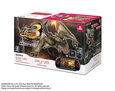ソニー・コンピュータエンタテインメントジャパン(SCEJ)は、株式会社カプコンとのコラボレーションにより、PSP「プレイステーション・ポータブル」(PSP-3000)とPSP専用ソフトウェア『モンスターハンターポータブル 3rd』をセットにした『PSP「プレイステーション・ポータブル」 新米ハンターズパック』を、希望小売価格19,800円(税込)にて、2011年2月10日より数量限定で発売する。
