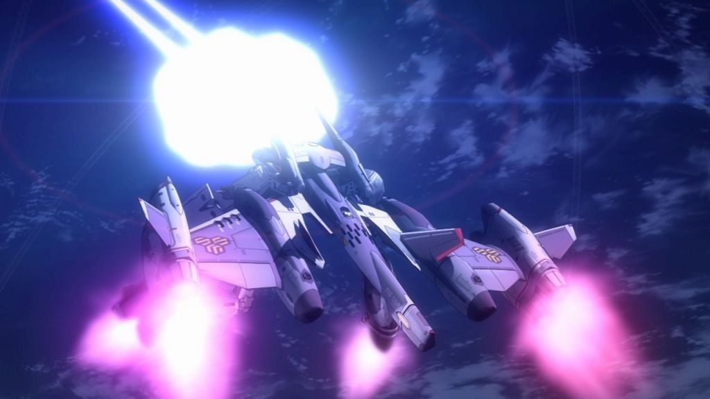 ランカとシェリルによる「Get it on - flying rock」をバックに、バルキリーの共演をCGで描いたオープニング映像
