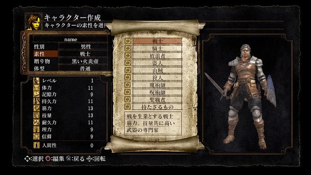 「Demon's Souls」にあった"生まれ"のようなもので、ステータスや初期装備が決まる。