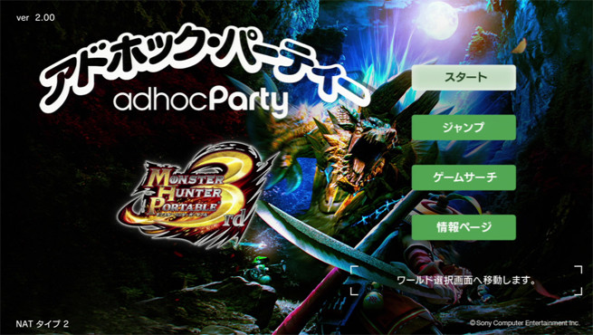 「アドホック・パーティー×PSP Remaster」でアドホック・パーティーを起動し、スタート。
