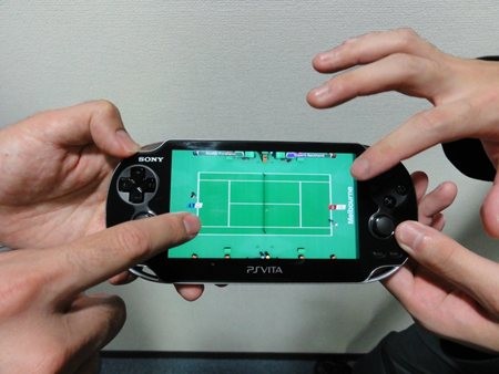 マルチタッチのタッチスクリーンを使って1台のPlayStation Vitaで2人対戦!向かい合ってのタッチ操作で、コースの打ち分けや球種の打ち分けも可能。